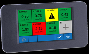 - Output: 2 sorties (g, mm/s, µm) en 4-20mA ou 0-10V