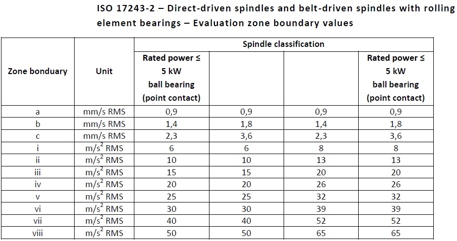 LTSC (Long Term Spindle Condition): Mesure en Vélocité vibratoire: [mm/s eff], Bande passante 10