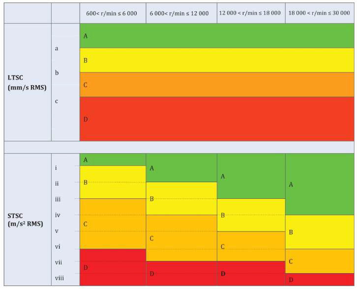 STSC (Short Term Spindle Condition): Mesure en Accélération: [m/s2], Bande passante 2000 Hz -